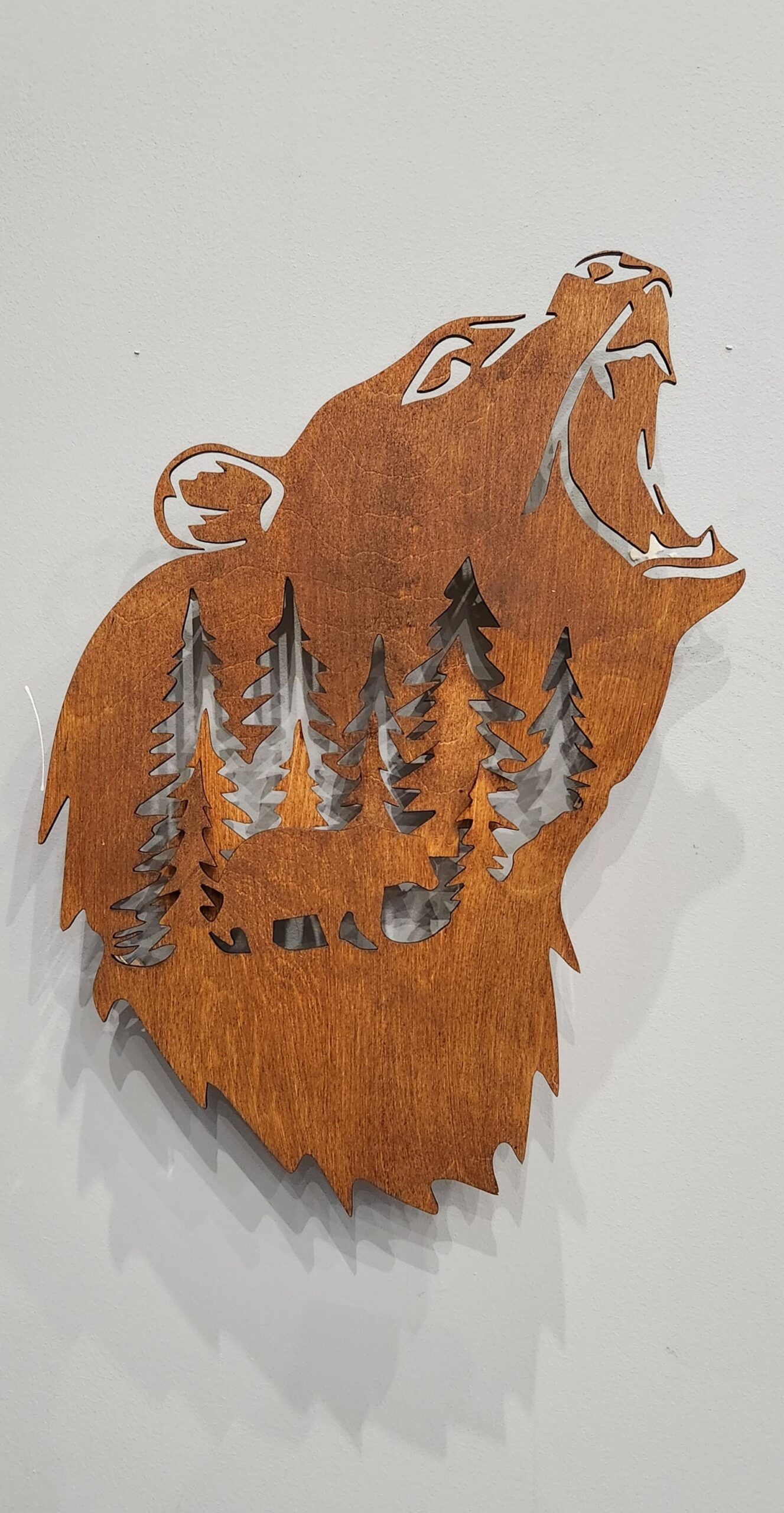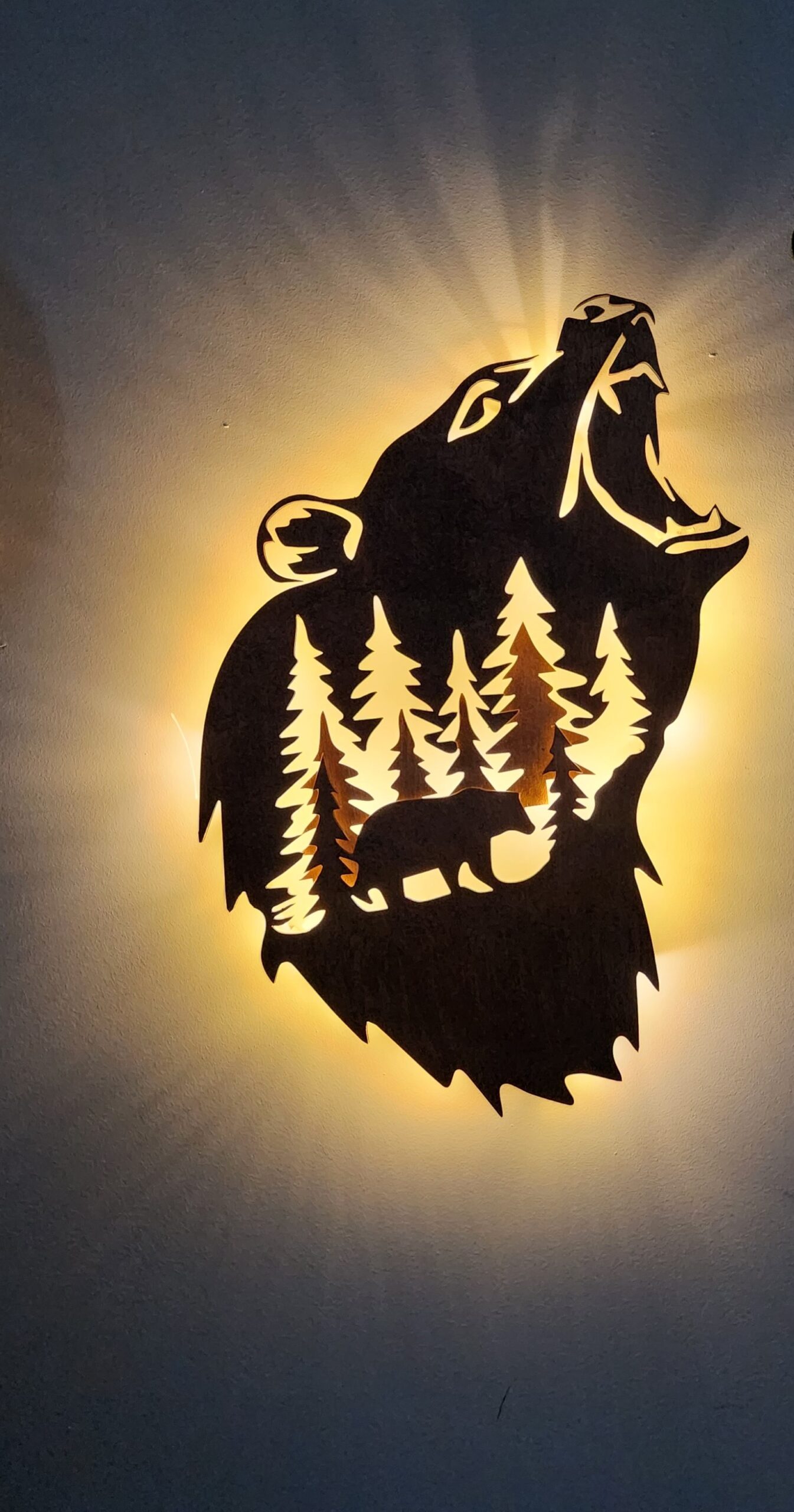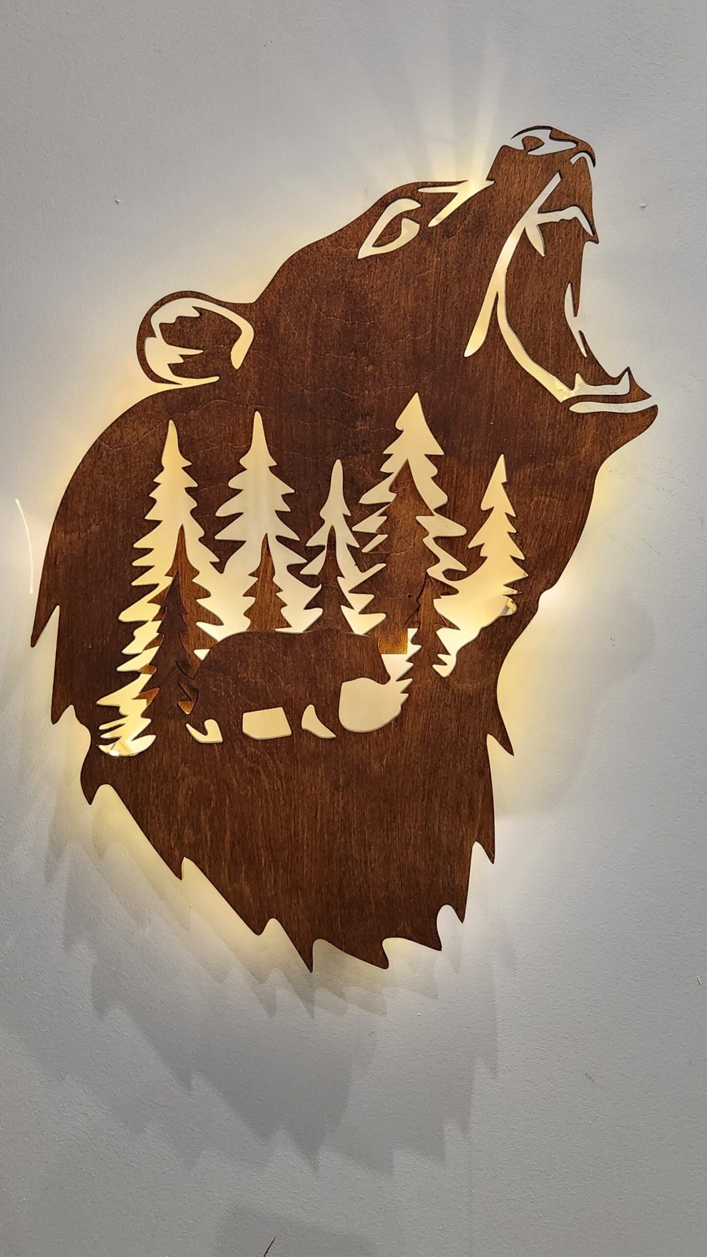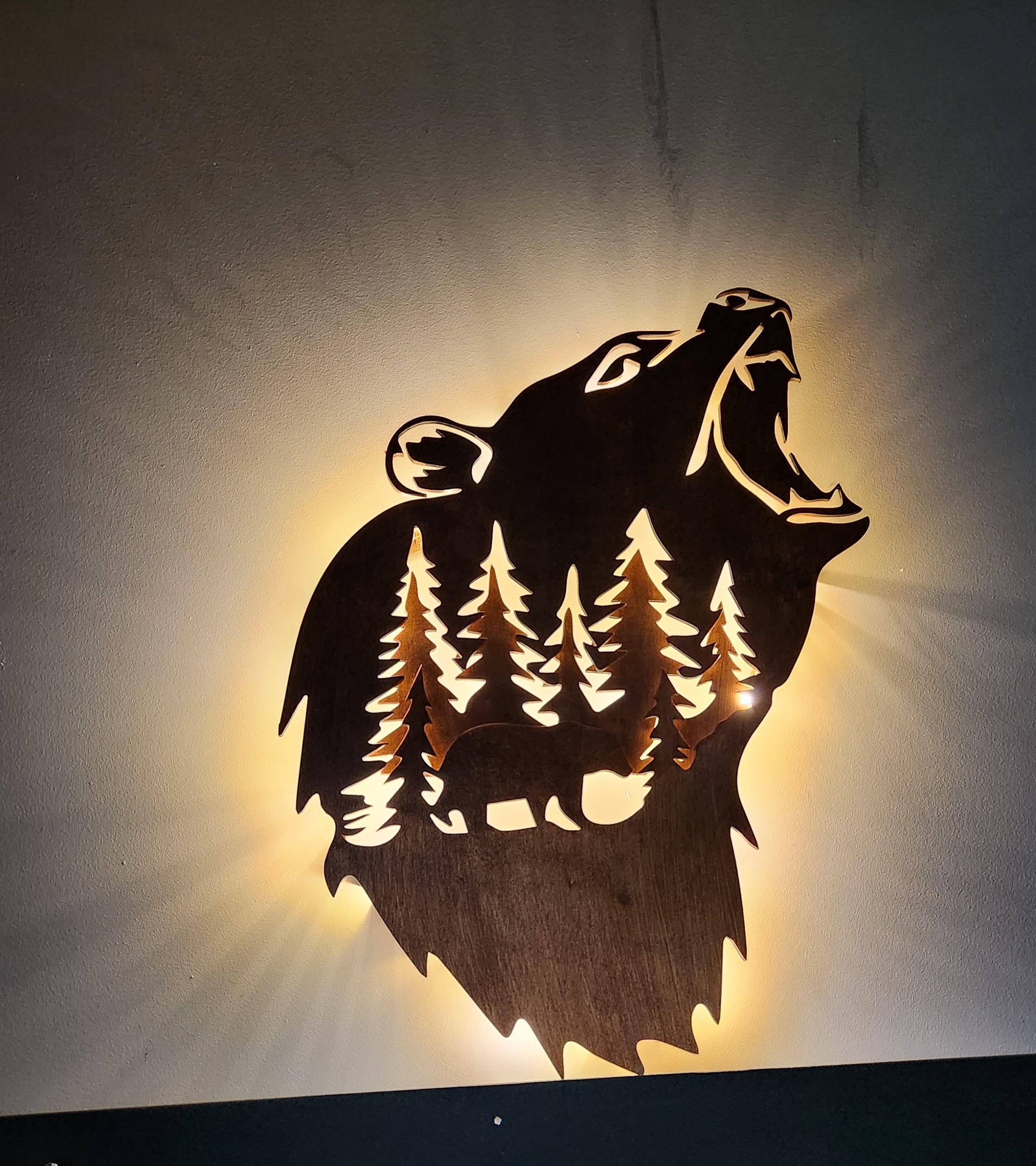 Drewniana Lampka Nocna LED – Niedźwiedź w Leśnym Krajobrazie z Efektem 3D