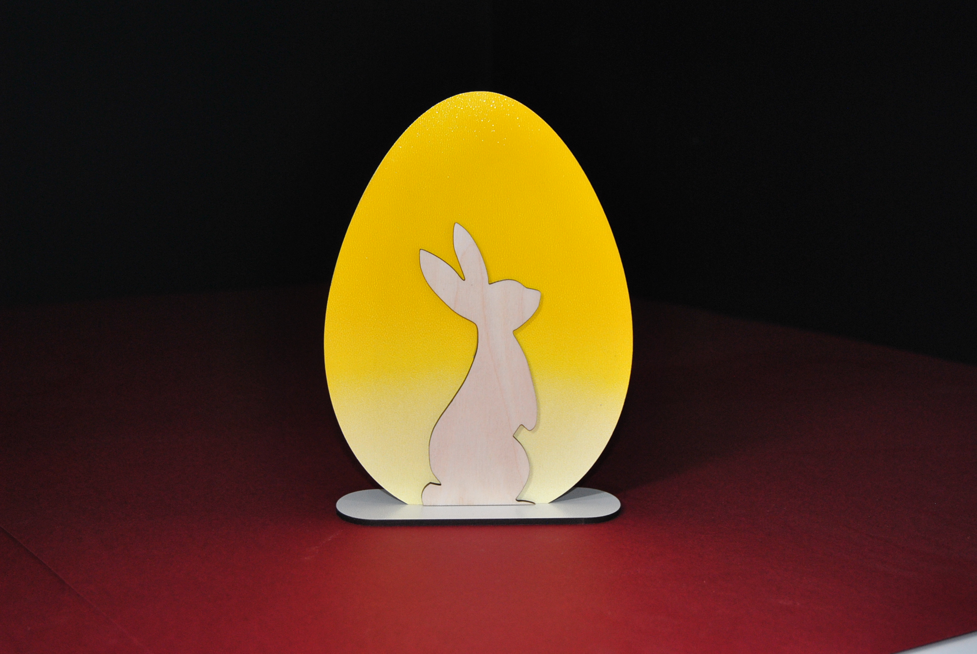 Stwórz wyjątkowy, świąteczny klimat w swoim wnętrzu dzięki dekoracji wielkanocnej z efektem 3D! Drewniane jajko w ciepłych odcieniach żółci z naklejoną sylwetką zajączka tworzy efekt głębi, nadając ozdobie unikalny charakter.
