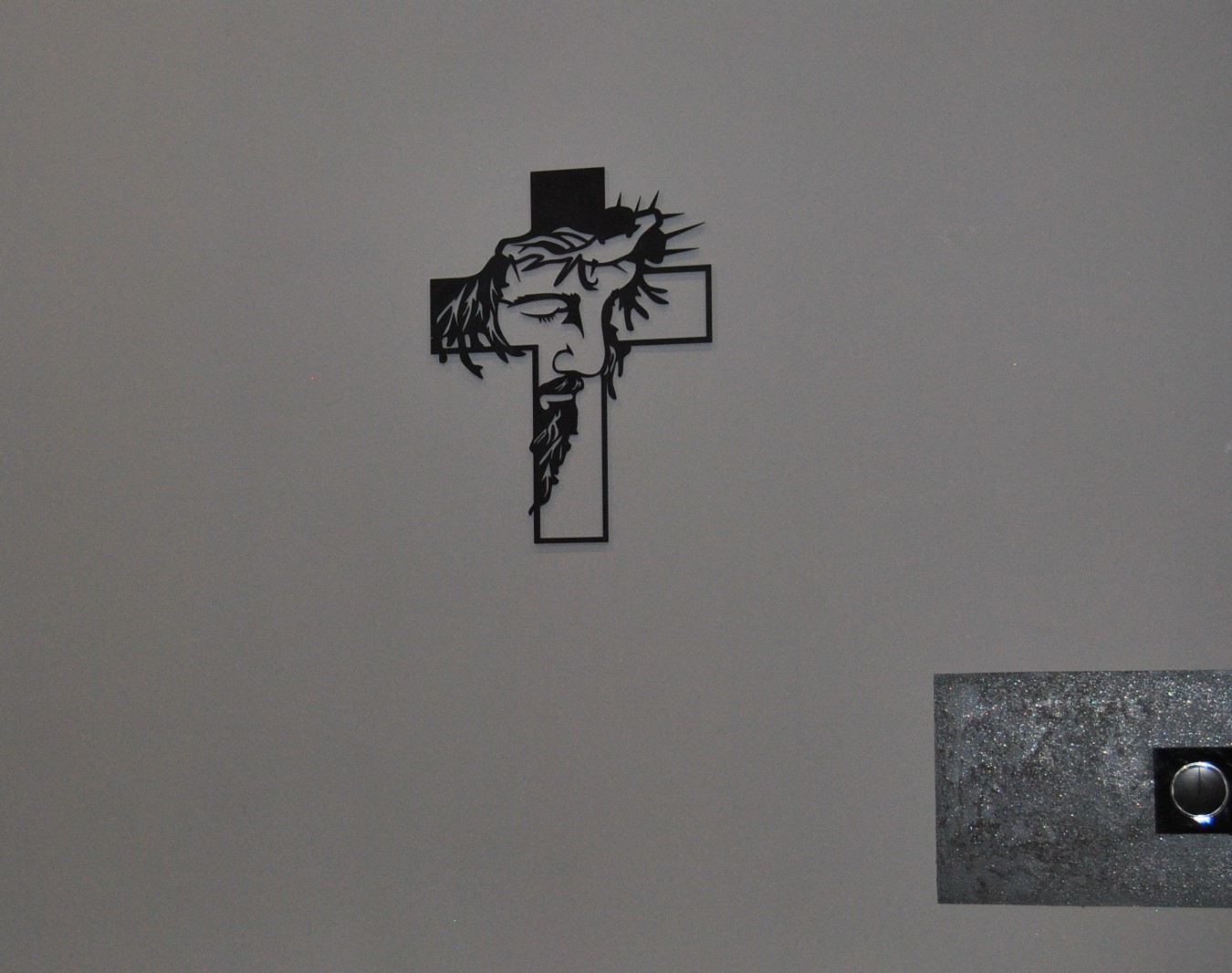 Prezentujemy wyjątkową dekorację ścienną przedstawiającą wizerunek Chrystusa w koronie cierniowej, subtelnie wpisany w kształt krzyża. Ten starannie wykonany element doskonale sprawdzi się jako elegancka ozdoba wnętrza, wprowadzając do niego atmosferę zadumy, spokoju i duchowej refleksji.